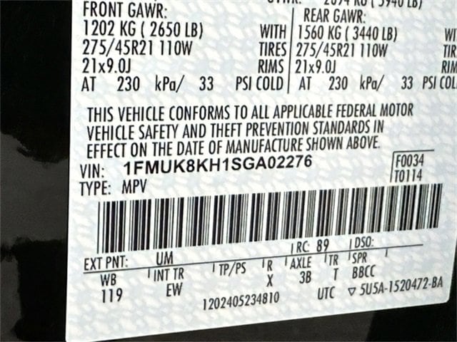 Recent Arrival! Equipment Group 300A Standard Package, ST-Line Street Pack (Performance Brakes, Red Painted Perf Front & Rear Brake Calipers, and Wheels: 21" Magnetite-Painted Aluminum), 10 Speakers, 3.58 Non-Limited Slip Rear Axle, 3rd row seats: bench, 4-Wheel Disc Brakes, ABS brakes, Air Conditioning, Alloy wheels, AM/FM radio: SiriusXM with 360L, Apple CarPlay/Android Auto, Auto High-beam Headlights, Automatic temperature control, Brake assist, Bumpers: body-color, Compass, Delay-off headlights, Driver door bin, Driver vanity mirror, Dual front impact airbags, Dual front side impact airbags, Electronic Stability Control, Emergency communication system: 911 Assist, Exterior Parking Camera Rear, Four wheel independent suspension, Front & 2nd Rows Floor Liners w/Carpet Floor Mats, Front anti-roll bar, Front Bucket Seats, Front Center Armrest, Front dual zone A/C, Front fog lights, Front reading lights, Fully automatic headlights, Garage door transmitter, Heated door mirrors, Heated front seats, Heated steering wheel, Heated Unique Cloth Captain's Chairs, Illuminated entry, Knee airbag, Leather steering wheel, Low tire pressure warning, Navigation System, Occupant sensing airbag, Outside temperature display, Overhead airbag, Overhead console, Panic alarm, Passenger door bin, Passenger vanity mirror, Power door mirrors, Power driver seat, Power Liftgate, Power passenger seat, Power steering, Power windows, Radio: B&O Sound System by Bang & Olufsen, Rear air conditioning, Rear anti-roll bar, Rear reading lights, Rear window defroster, Rear window wiper, Remote keyless entry, Security system, Speed control, Speed-sensing steering, Speed-Sensitive Wipers, Split folding rear seat, Spoiler, Steering wheel mounted audio controls, Tachometer, Telescoping steering wheel, Tilt steering wheel, Traction control, Trip computer, Variably intermittent wipers, and Wheels: 20" Ebony-Painted Machined Aluminum.