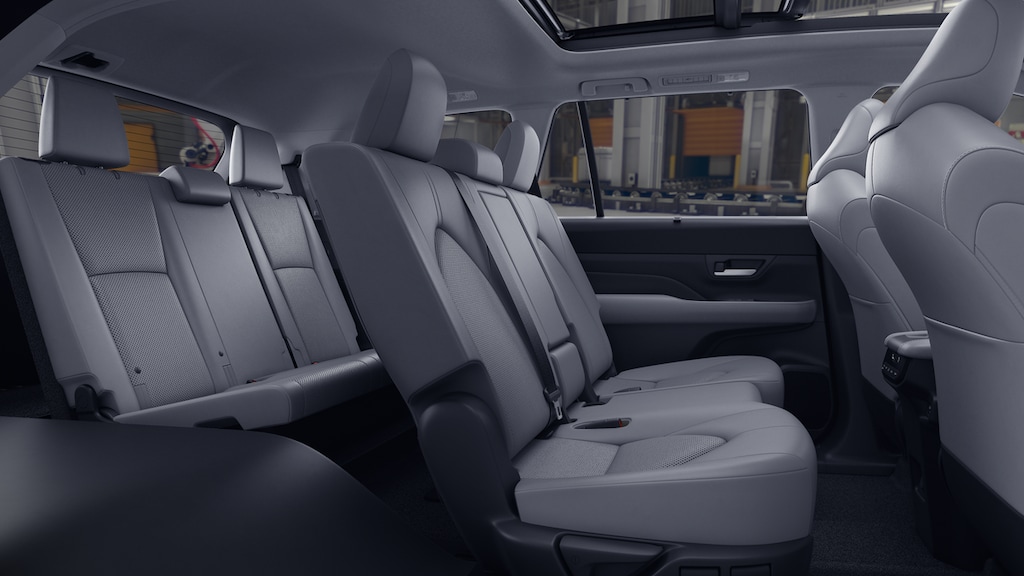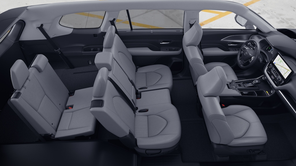 - 7-passenger seating with second-row fold-down captain's chairs and fold-down inboard armrests, adjustable headrests and two cup holders mounted on the floor; and 60/40 split, fold-down third-row seats with sliding headrests and recline function.