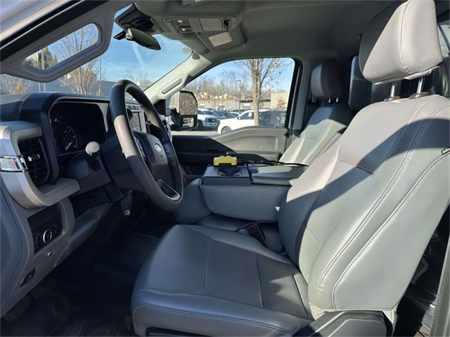 GVWR: 19,500 lb Payload Plus Upgrade Package, High Capacity Trailer Tow Package, Order Code 660A, Snow Plow Prep Package, XL Chrome Package (Bright Grille, Chrome Front Bumper, Halogen Fog Lamps, and Remote Start), GVWR: 18,000 lbs Payload Package, 120V/400W Outlet, 350 Amp Dual Alternators, 4 Speakers, 4-Wheel Disc Brakes, 6-Ton Hydraulic Jack, ABS brakes, Air Conditioning, AM/FM radio, AM/FM Stereo w/MP3 Player, Brake assist, Center High-Mounted Stop Lamp (CHMSL), Compass, Delay-off headlights, Dual 68 AH/65 AGM Battery, Dual front impact airbags, Dual front side impact airbags, Dual rear wheels, Emergency communication system: SYNC 4 911 Assist, Engine Block Heater, Front anti-roll bar, Front Center Armrest w/Storage, Front License Plate Bracket, Front reading lights, Fully automatic headlights, HD Vinyl 40/20/40 Split Bench Seat, Heated door mirrors, Illuminated entry, Outside temperature display, Overhead airbag, Overhead console, Panic alarm, Passenger cancellable airbag, Passenger vanity mirror, Platform Running Boards, Power door mirrors, Power steering, Power windows, Rear anti-roll bar, Rear View Camera & Prep Kit, Remote keyless entry, Speed control, Steering wheel mounted audio controls, SYNC 4 Communications & Entertainment System, Tachometer, Telescoping steering wheel, Tilt steering wheel, Traction control, Trip computer, Turn signal indicator mirrors, Variably intermittent wipers, and Wheels: 19.5" x 6" Argent Painted Steel.
