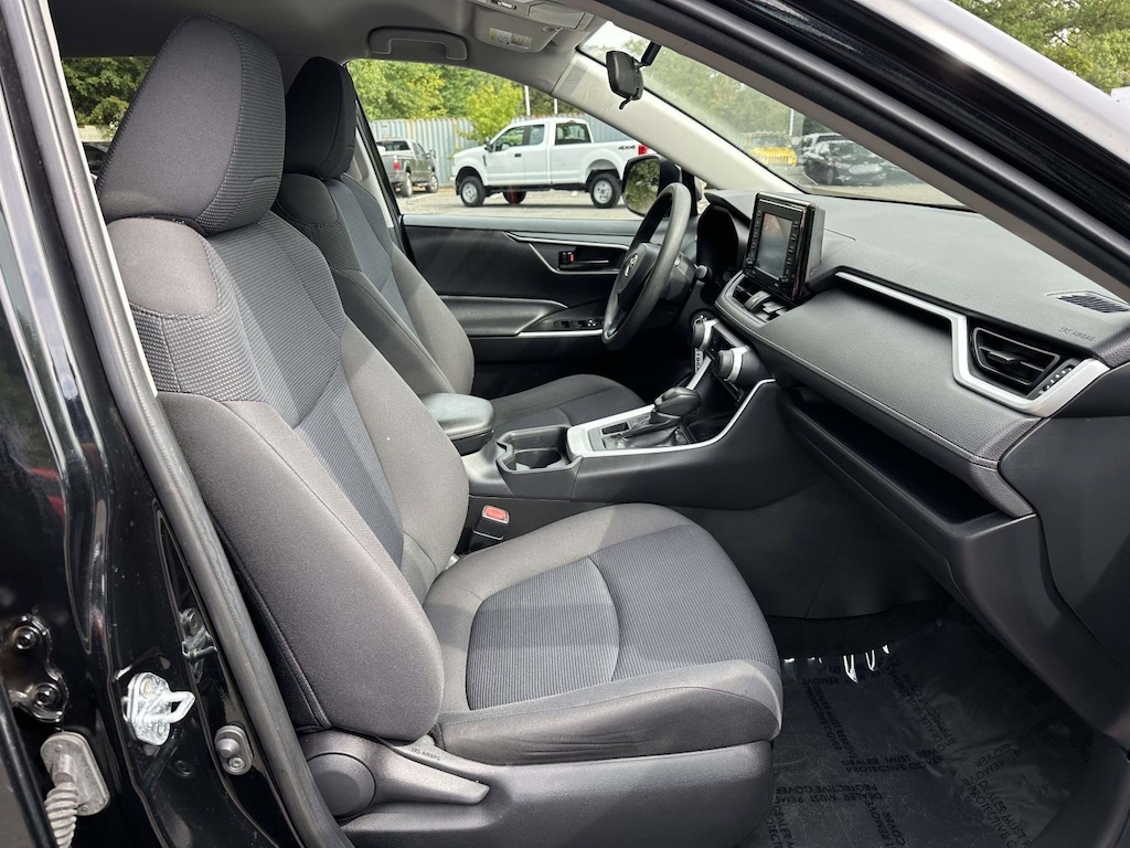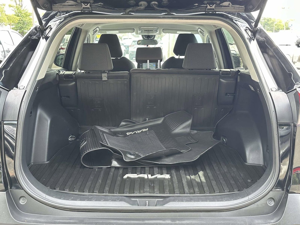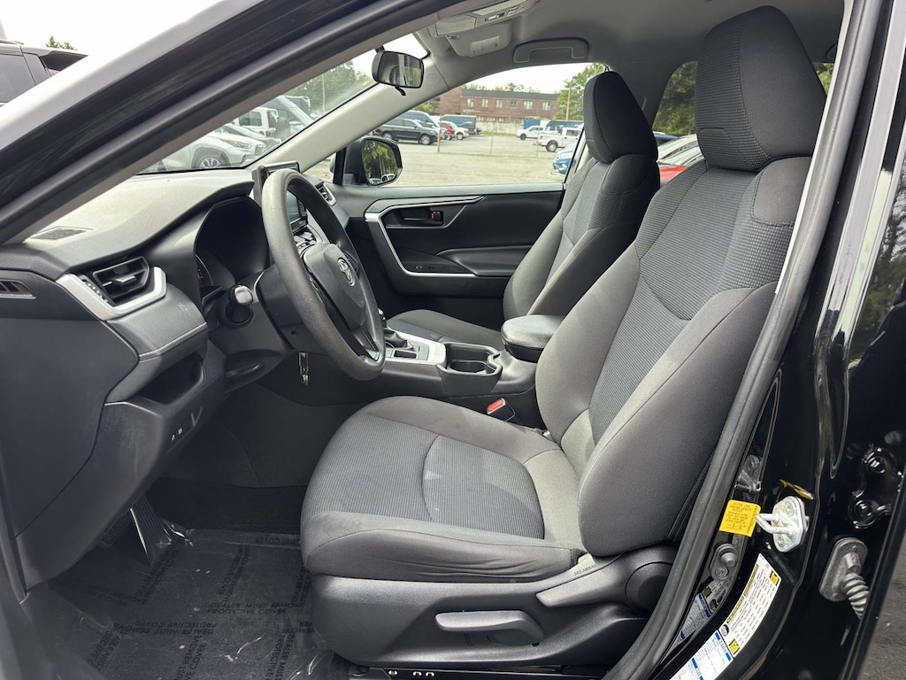 Black 2020 Toyota RAV4 LE AWD 8-Speed Automatic 2.5L 4-Cylinder DOHC Dual VVT-i AWD, Black Cloth, 4-Wheel Disc Brakes, 6 Speakers, ABS brakes, Air Conditioning, All Weather Floor Liners, All Weather Liner Package, AM/FM radio: SiriusXM, AM/FM Stereo, Brake assist, Bumpers: body-color, Cargo Liner, Dual front impact airbags, Dual front side impact airbags, Electronic Stability Control, Emergency communication system: Entune Safety Connect, Four wheel independent suspension, Knee airbag, Low tire pressure warning, Power steering, Power windows, Radio data system, Rear window defroster, Remote keyless entry, Speed-sensing steering, Steering wheel mounted audio controls, Traction control.